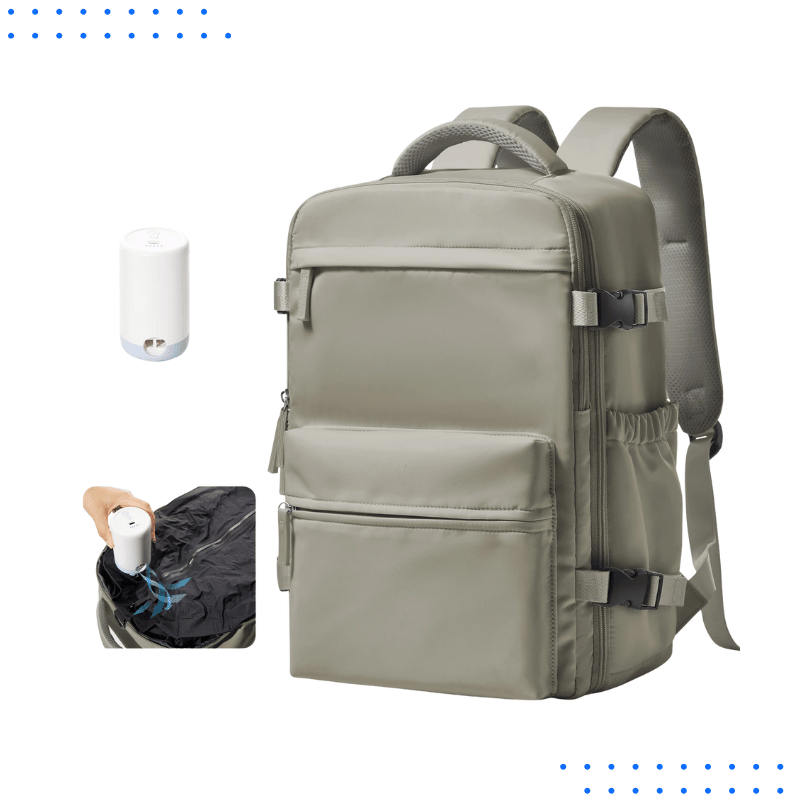 Meet airline regulations and maximize space with this stylish compression backpack. With a built-in vacuum system, ergonomic design, and TSA-friendly access, it’s your perfect companion for short trips, business travel, or everyday carry.